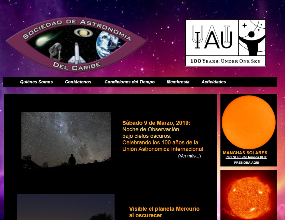 - Sociedad de Astronomía del Caribe: March 9, 2019 Observation Night: "Noche de Observación Bajo Cielos Obscuros" Sociedad de Astronomía del Caribe - 9 de Marzo, 2019 desde 6:45 pm en Carr. 303 km. 11.3 interior, entrando por el camino “La Gran Vía”, en La Pitahaya, Cabo Rojo.
