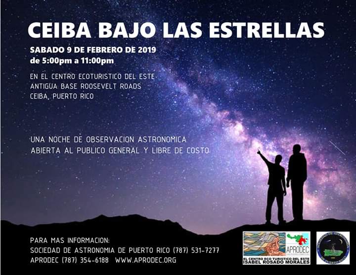 - Sociedad de Astronomía de Puerto Rico: "Ceiba Bajo Las Estrellas" February 9, 2019 from 5:00pm - 11:00pm
